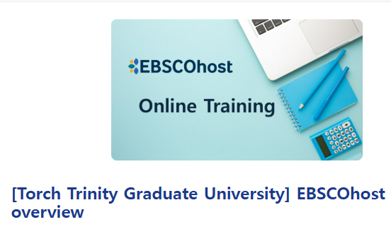 교육내용 : EBSCOhost를 중점적으로 소개해드릴 예정이며, Atla Religion Databases/Religion and Philosophy /Education source/ebook 총 4가지 데이터베이스 활용 방법 소개